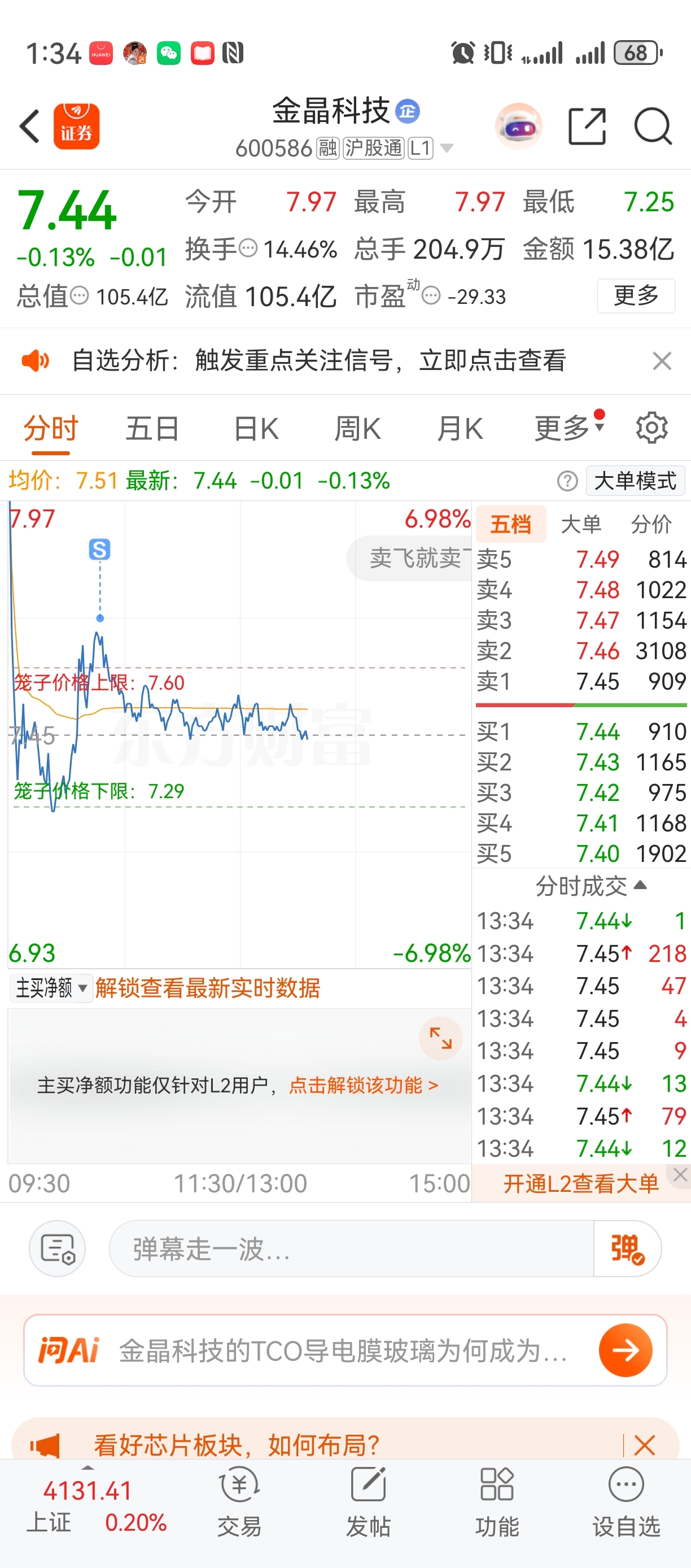 $金晶科技(SH600586)$ 7.71清空了,意外拿了个一字板,虽然没有卖到最高点,但是也知足了。。。