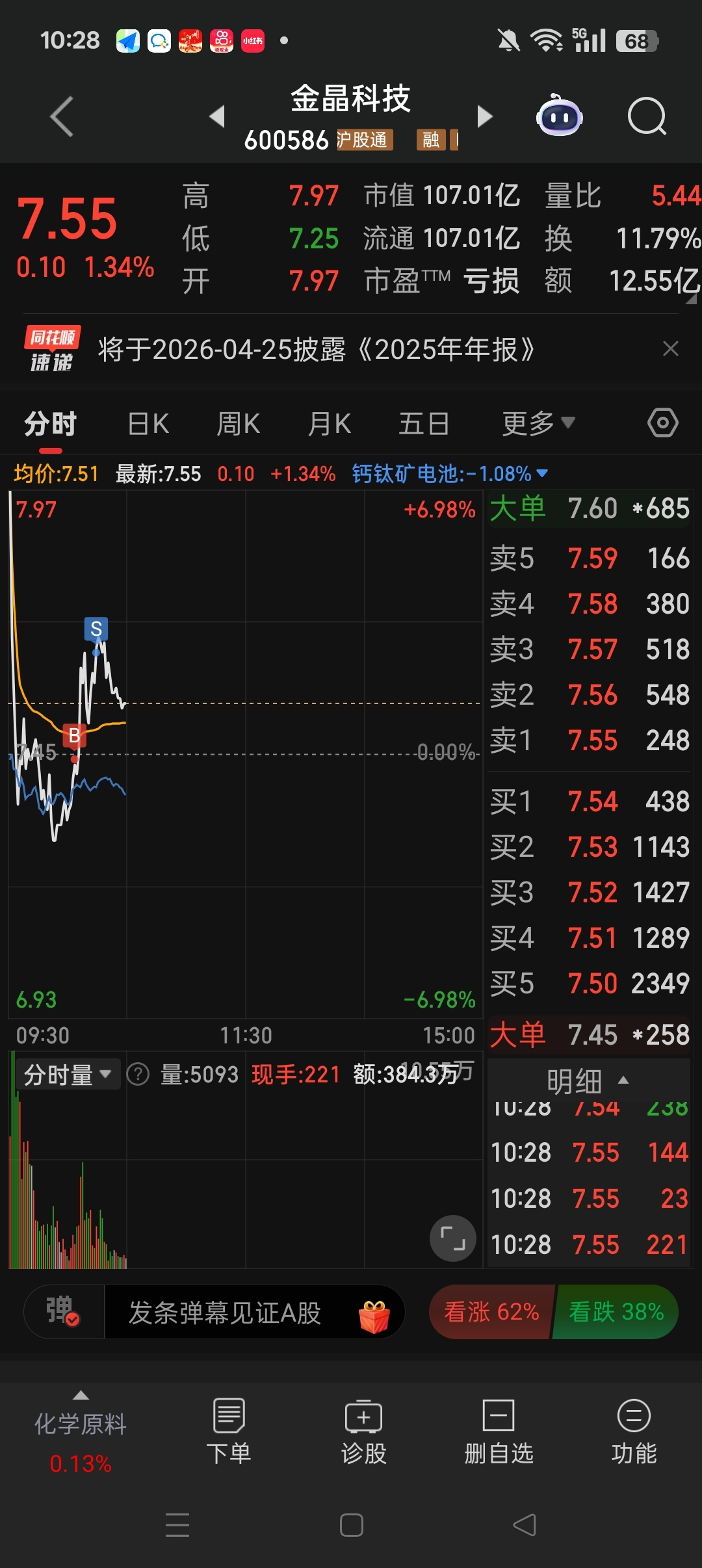 $金晶科技(SH600586)$ 买飞了一部分,补贴一点回来