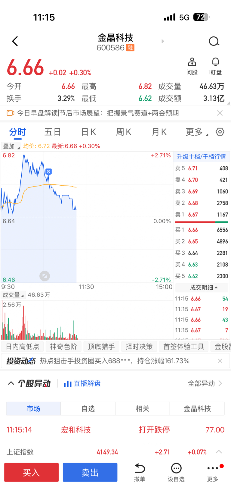 $金晶科技(SH600586)$ 槽,不知道谁砸6.74,可以,一起砸。套利,没亏钱跑路,渣渣。我也格局你一上午了。我砸了6.73,不知道谁跟我了1700+手。