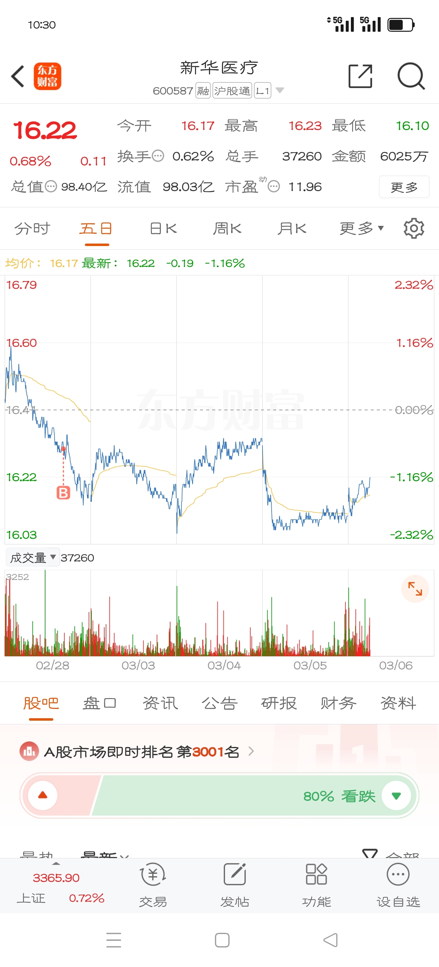 $新华医疗(SH600587)$ 保本就出~白白浪费大盘的激情四射