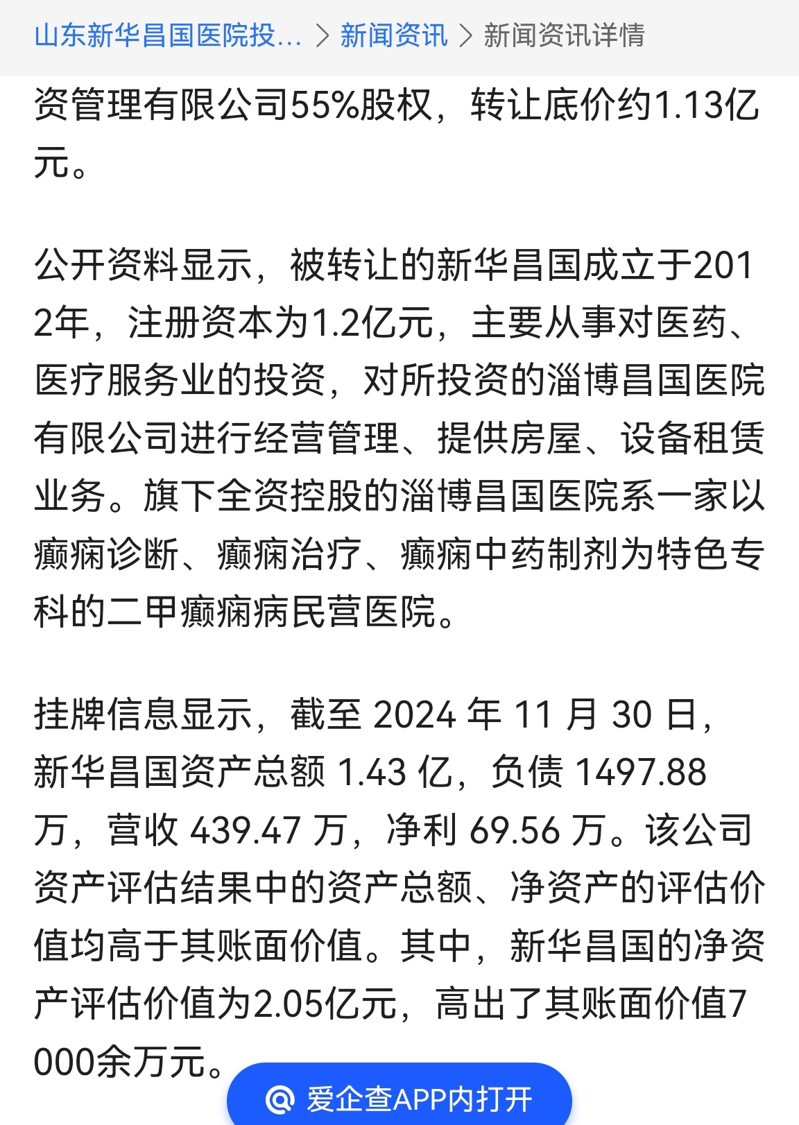 $新华医疗(SH600587)$ 卖了一个医院管理公司股权增殖3850万元,税后至少获利2880万元。2025年利润还有希望超过去年。也算个小利好吧。