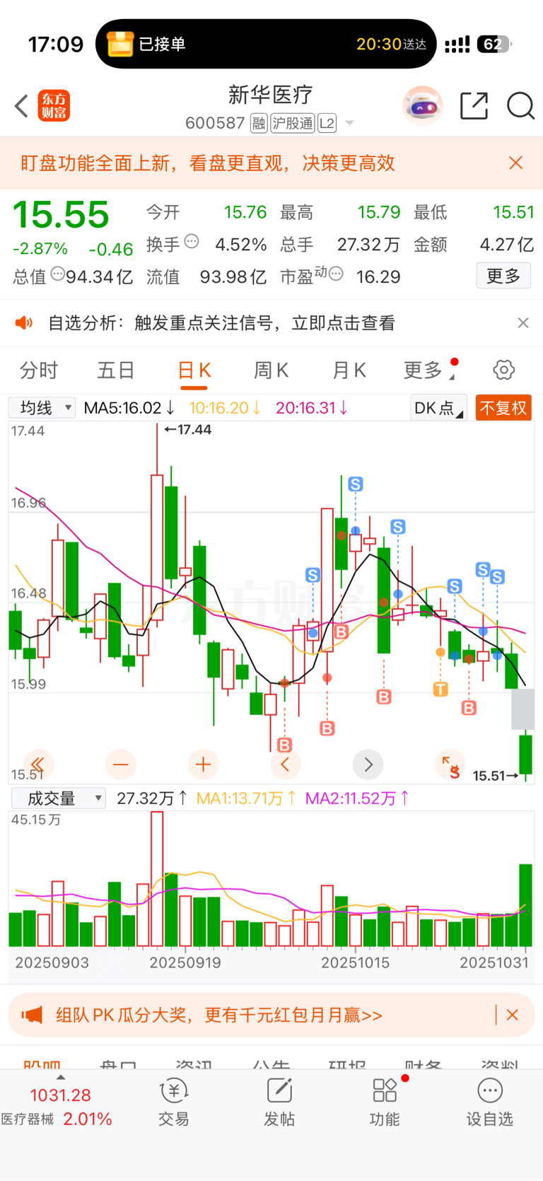 $新华医疗(SH600587)$ 一根阳线把我骗进来杀,还好跑得快