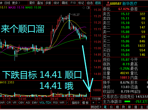 来个 顺口溜 【 下跌目标 1441 】14.41 元 哦