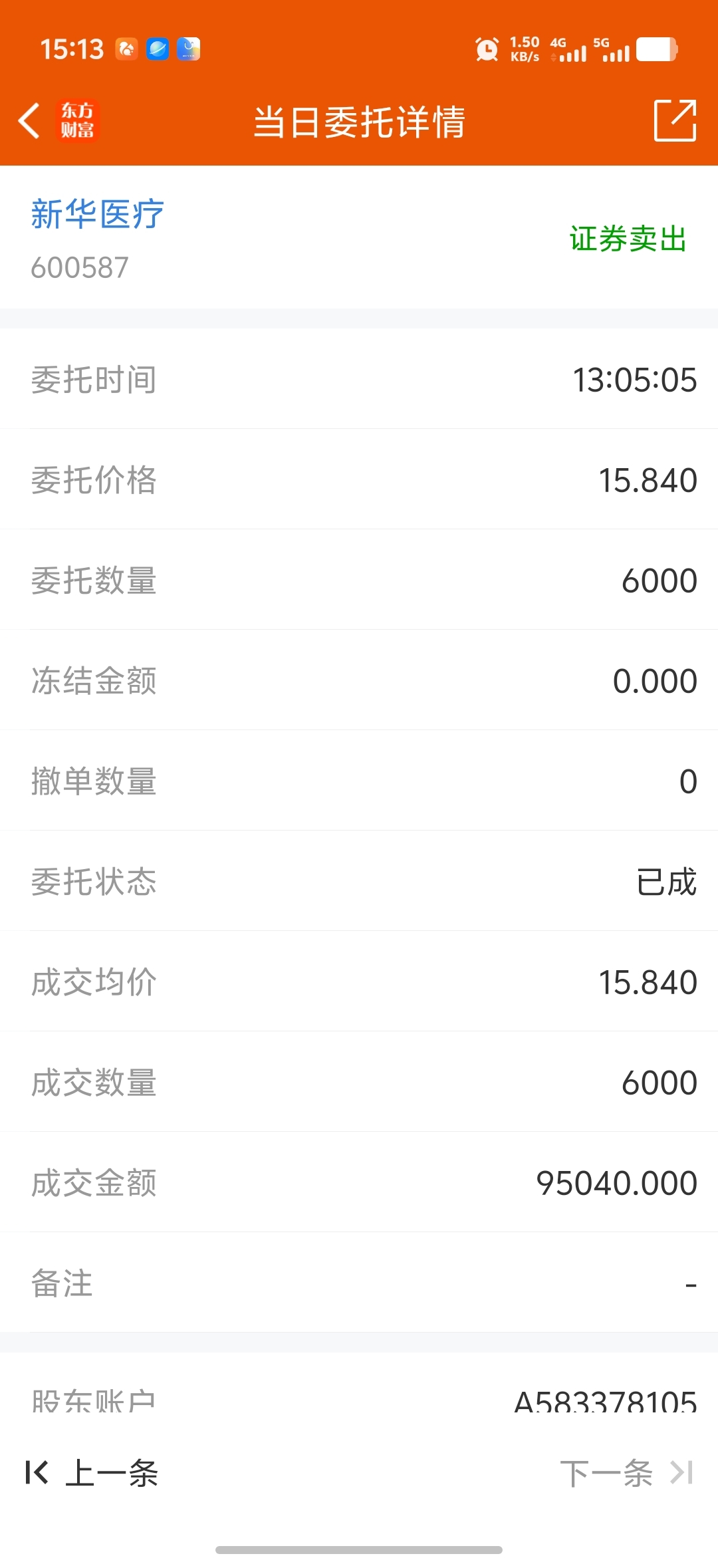 $新华医疗(SH600587)$ 今天板上卖出80手 不知道卖的对不对