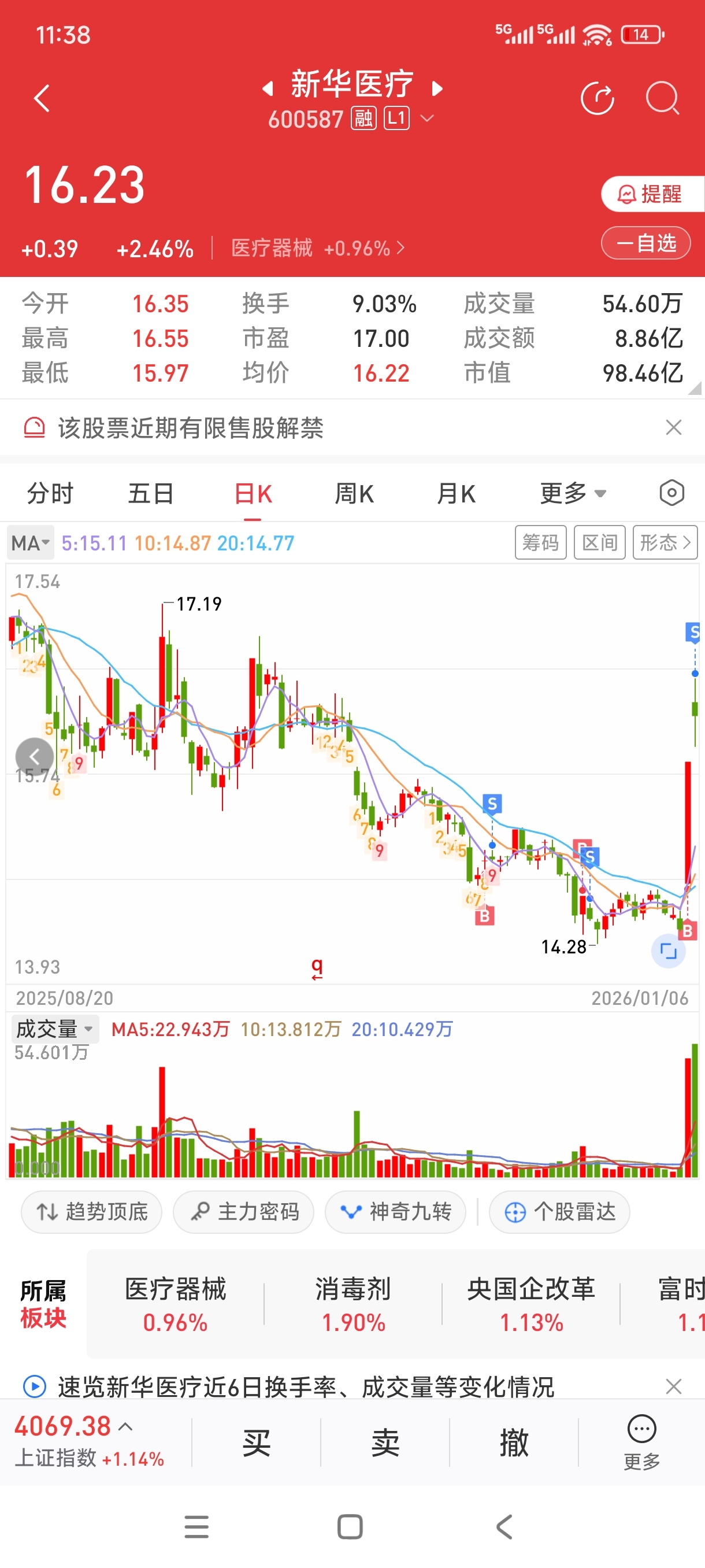 $新华医疗(SH600587)$ 清仓,清仓,清仓!脑机这么大的利好都不能板,放量滞涨,下午能涨停板表演洗头吃@@