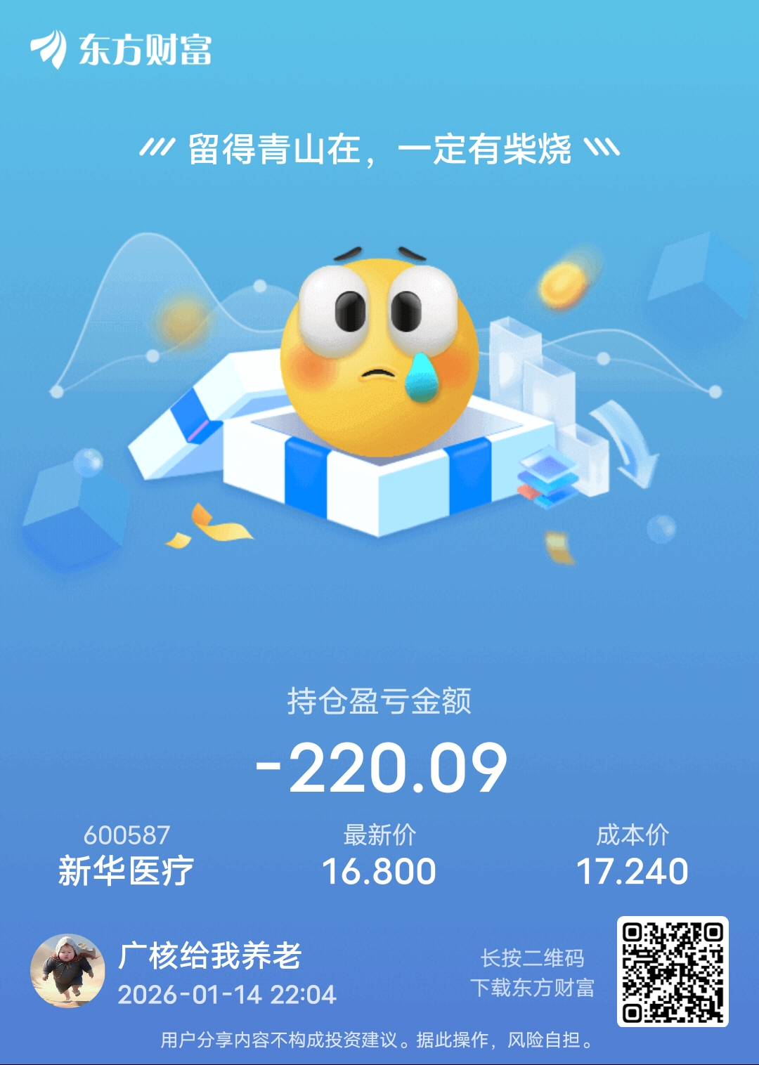 温馨提示: 1.根据《证券法》规定,禁止编造、传播虚假信息或者误导性信息,扰乱证券市场;2.用户在本社区发表的所有资料、言论等仅代表个人观点,与本网站立场无关,不对您构成任何投资建议。用户应基于自己的独立判断,自行决定证券投资并承担相应风险。《东方财富社区管理规定》