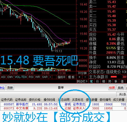 主力 一看 “俺 清早八晨 挂单 ”15.48 卖出 1800股 。