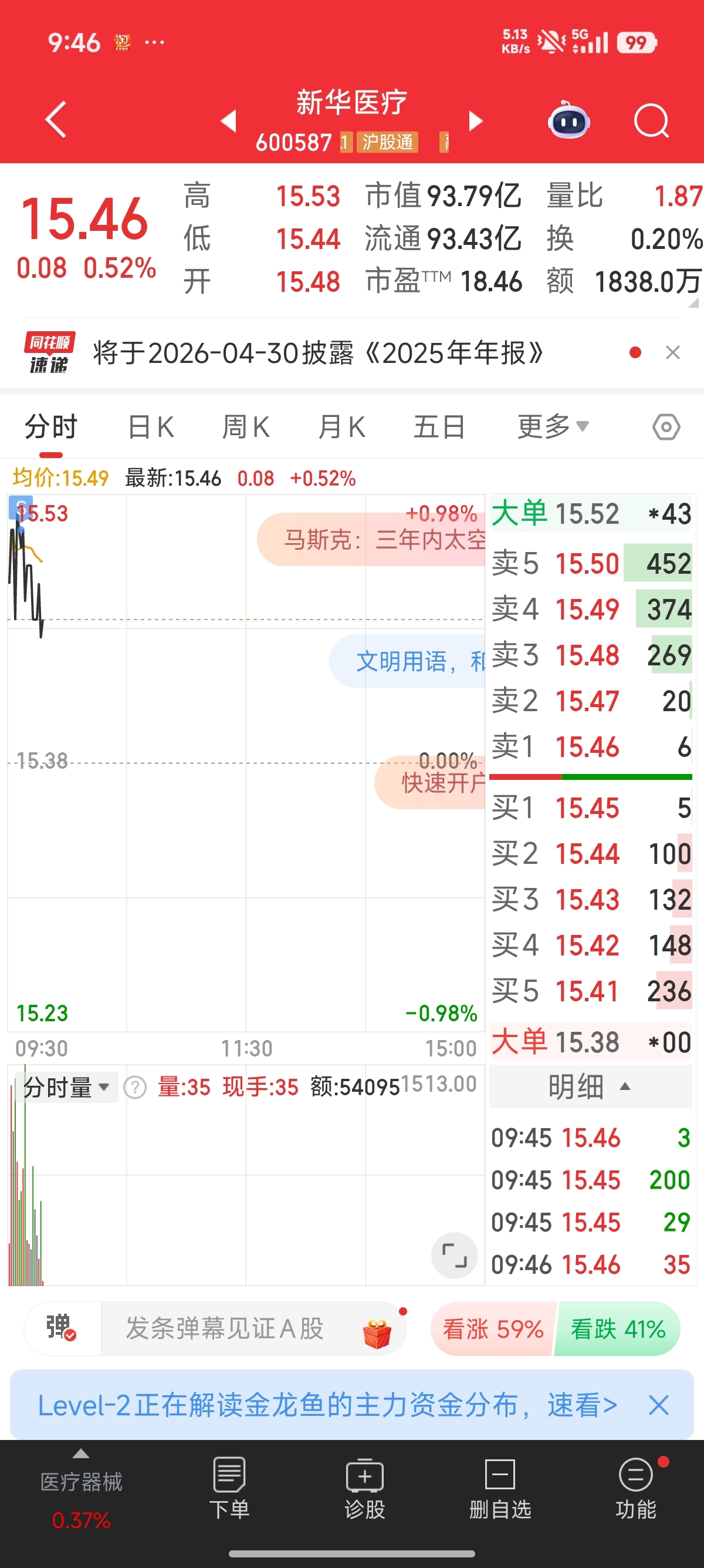 止盈新华医疗!赚钱就走。