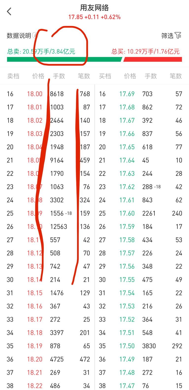 $用友网络(SH600588)$ 看图说话,不仅出货砸盘,还有这么多压单等着散户买买买,大家都急着跑路出货,你们还往里面钻,不怕吗
