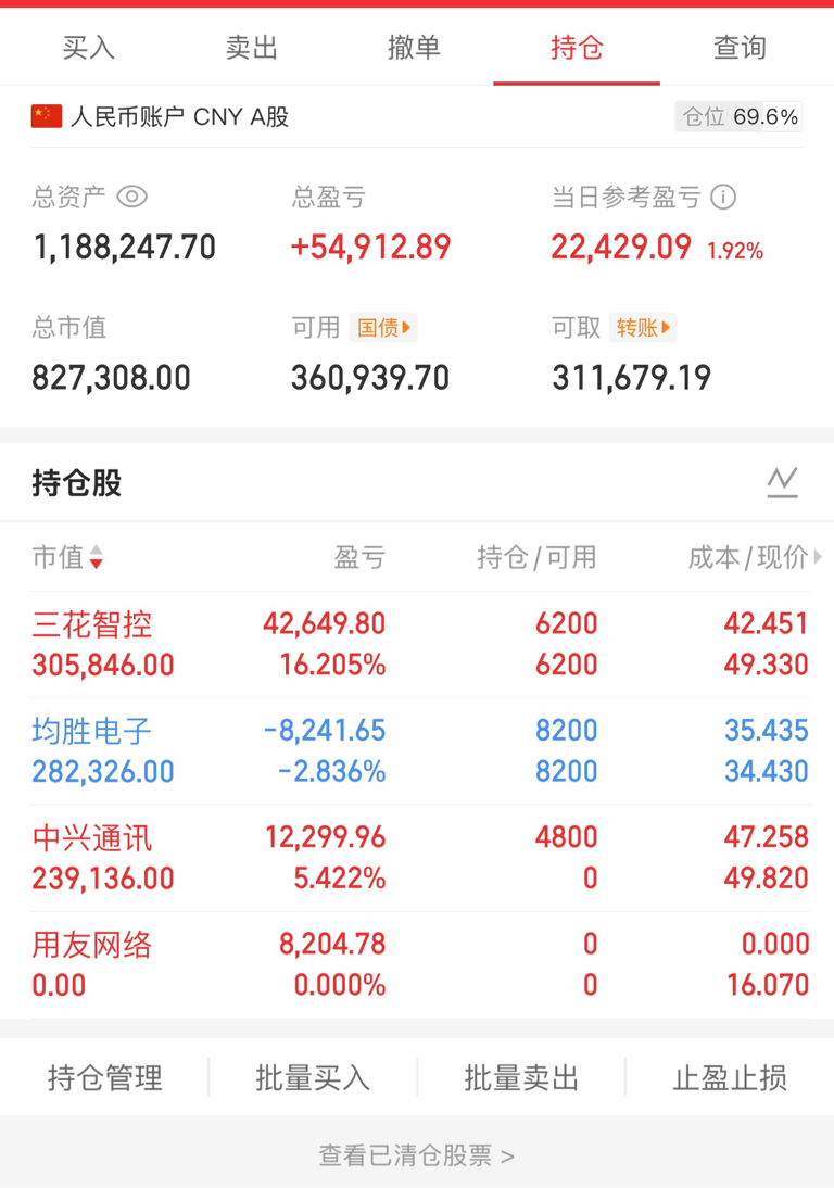 调仓清:用友网络锁:三花智控、均胜电子开:中兴通讯