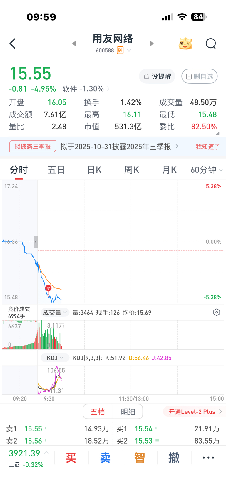 $用友网络(SH600588)$ 跌破15再买2000股,加油哦