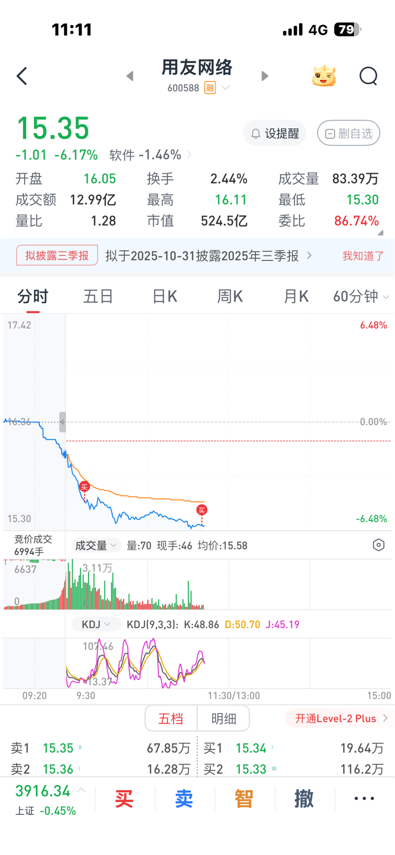 $用友网络(SH600588)$ 玩儿吧 留了18个补你