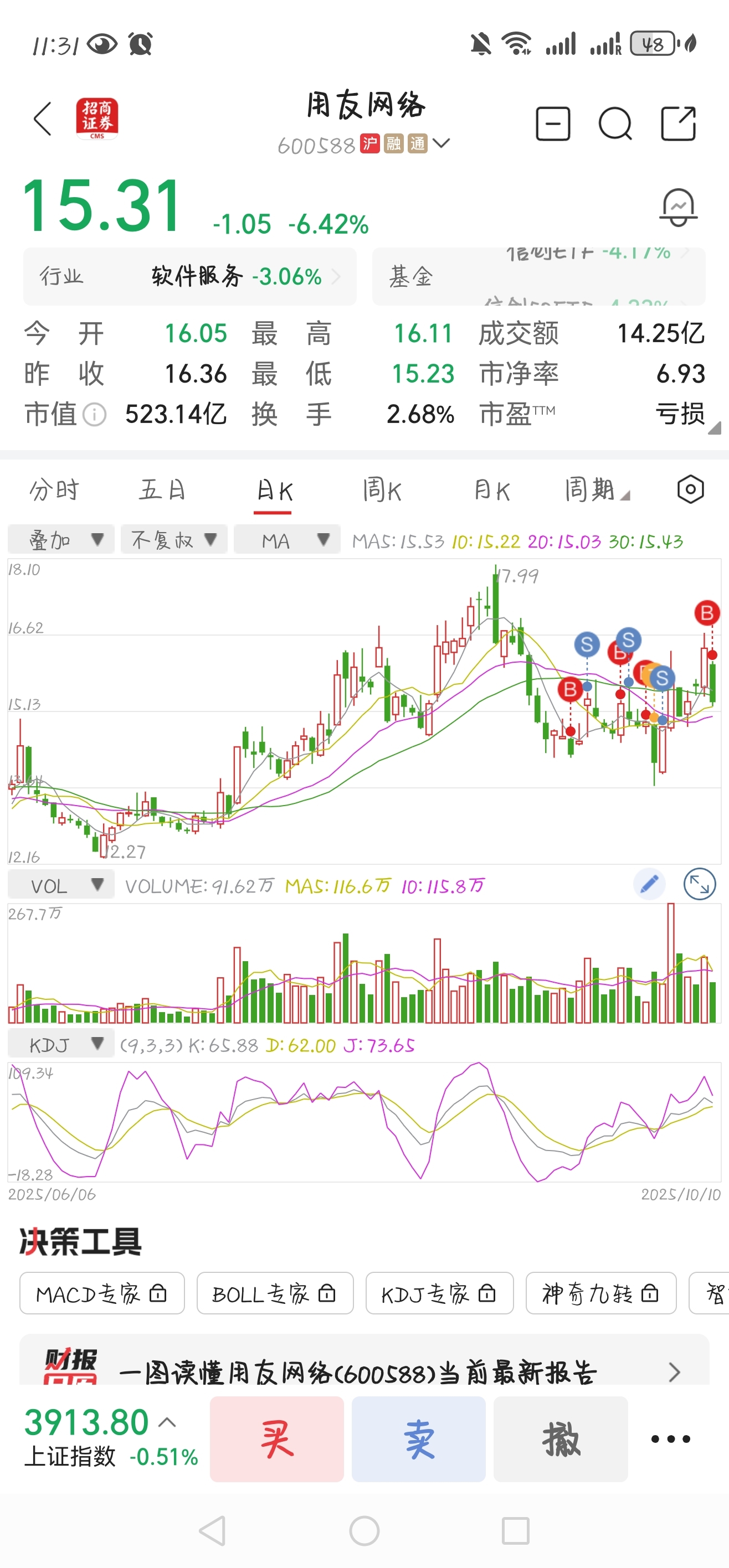 $用友网络(SH600588)$ 太了解用友了,回调就是机会,继续抄底#强势机会#
