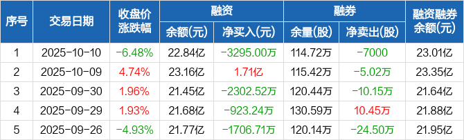 用友网络融资融券信息显示,2025年10月10日融资净偿还3295万元;融资余额22.84亿元,较前一日下降1.4%。