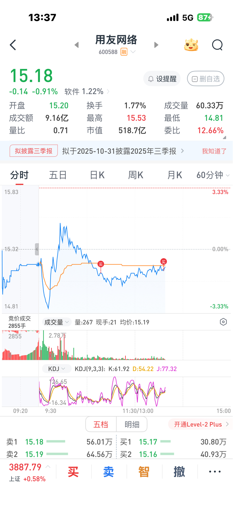 $用友网络(SH600588)$ 别的票都红了,就差你了~成本15.809