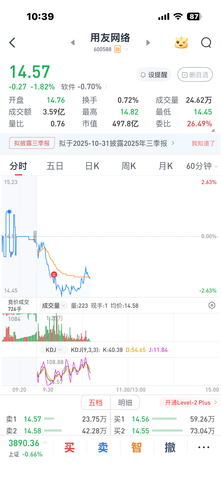 $用友网络(SH600588)$ 还能补2000股,等破14