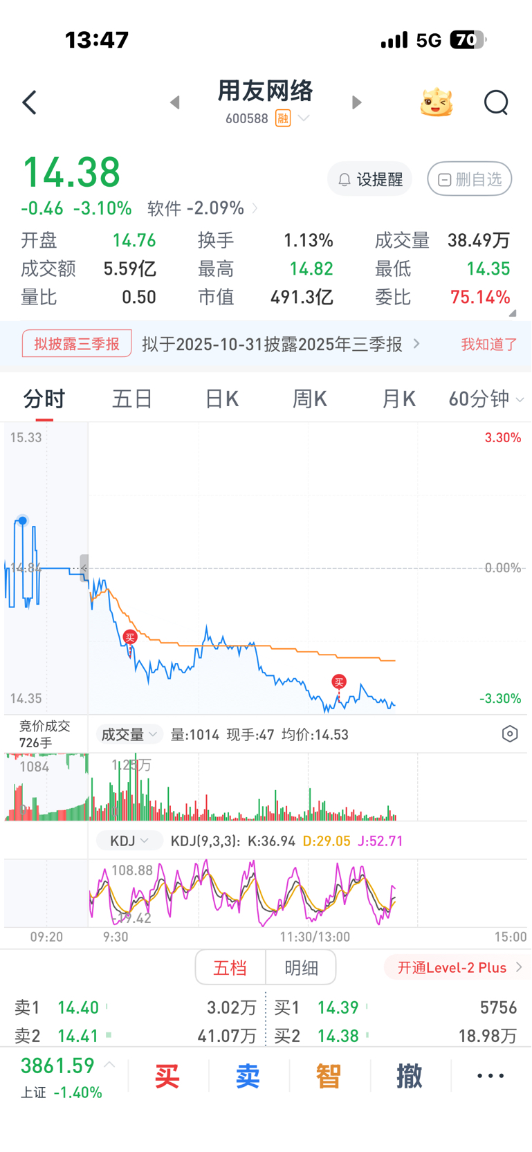 $用友网络(SH600588)$ 忍无可忍~就看你破不破14了
