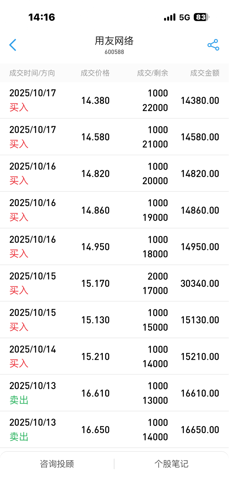 $用友网络(SH600588)$ 不破14不买了~子弹不多了,该吃吃该喝喝~今天买了大闸蟹~