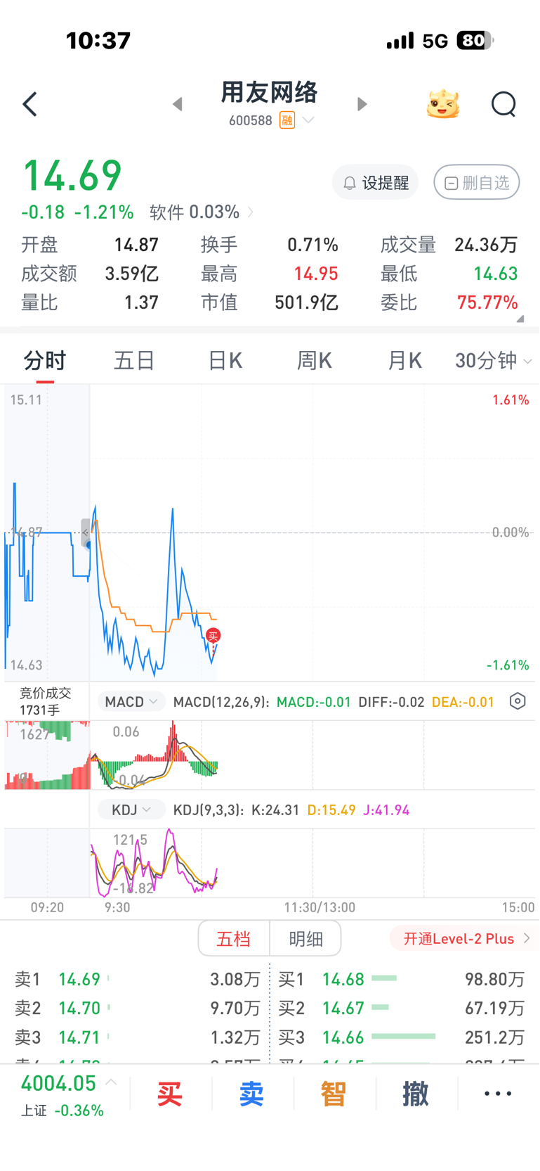 $用友网络(SH600588)$ 气气我了~上15就卖