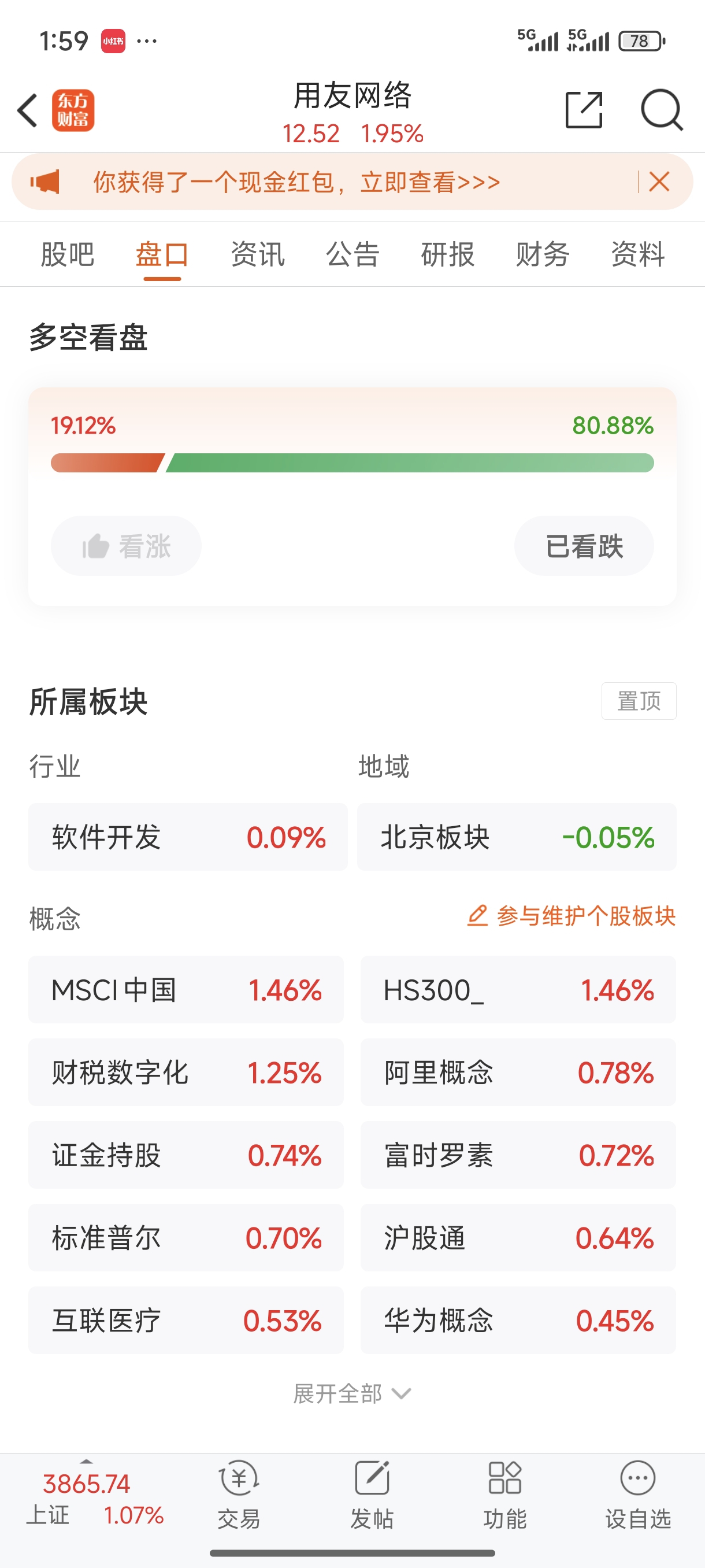 $用友网络(SH600588)$ 为什么上涨,还有80%的用户看跌