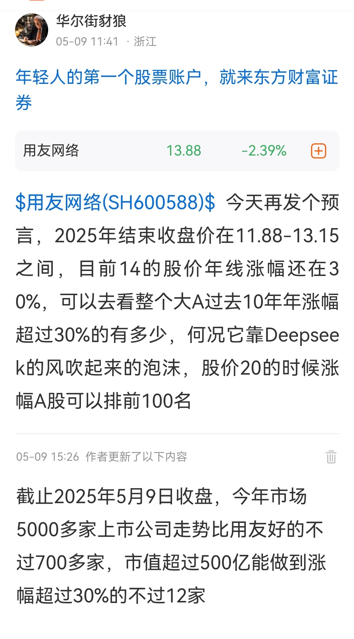$用友网络(SH600588)$ 还剩3个半交易日,预言即将成真,这个年收盘是不是超出很多人的意料,一曲量化埋群雄,哈哈
