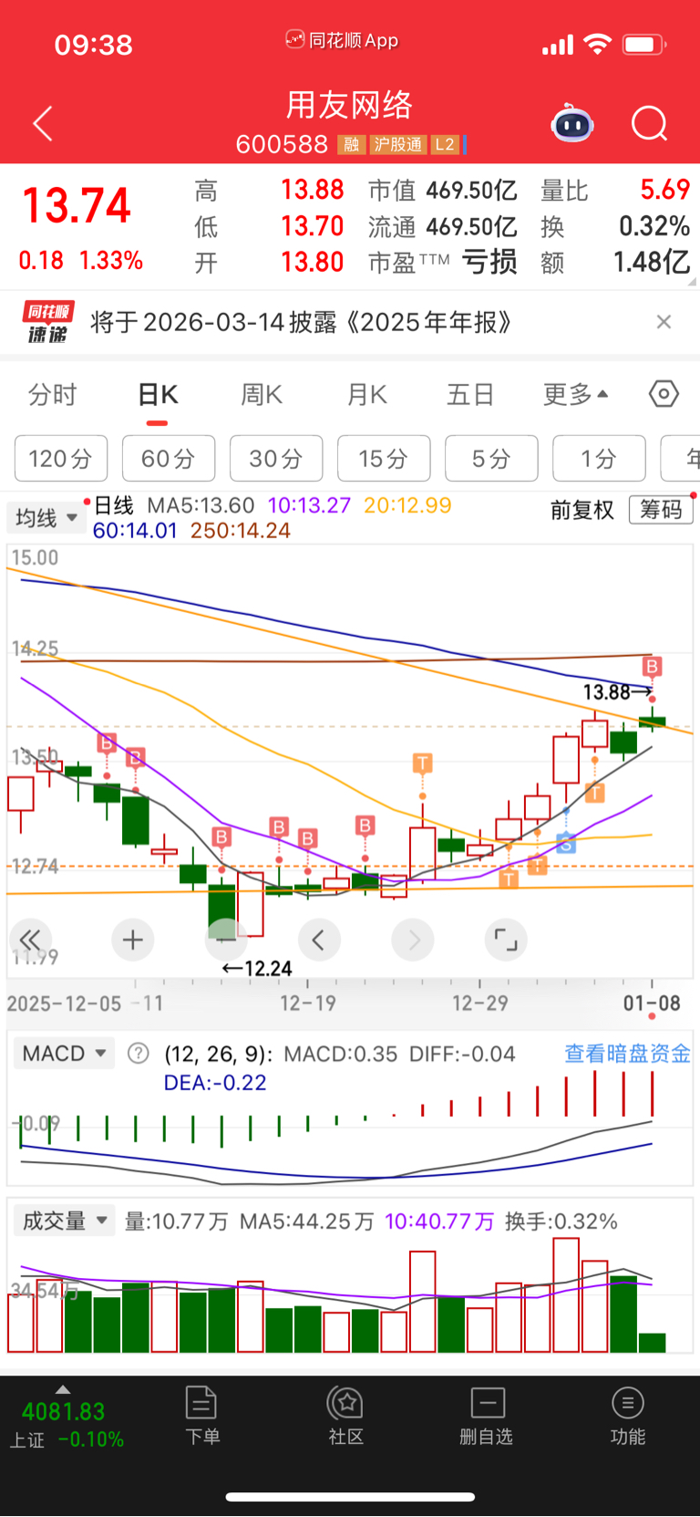 买回一半,看看纠错。13.8走的行业有刺激。那就Ai服务实体继续,不管指数震荡了