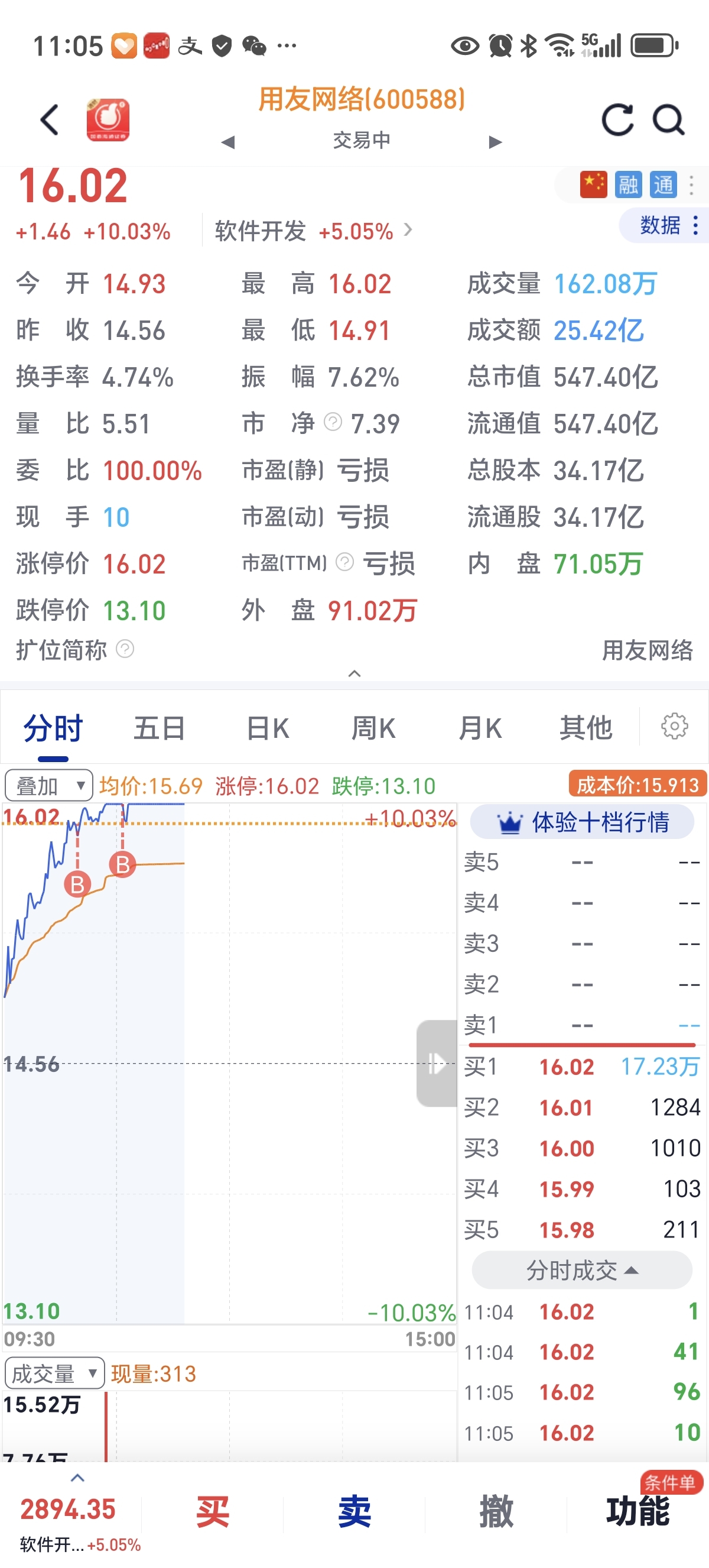 $用友网络(SH600588)$ 废话不多说,干就是了!