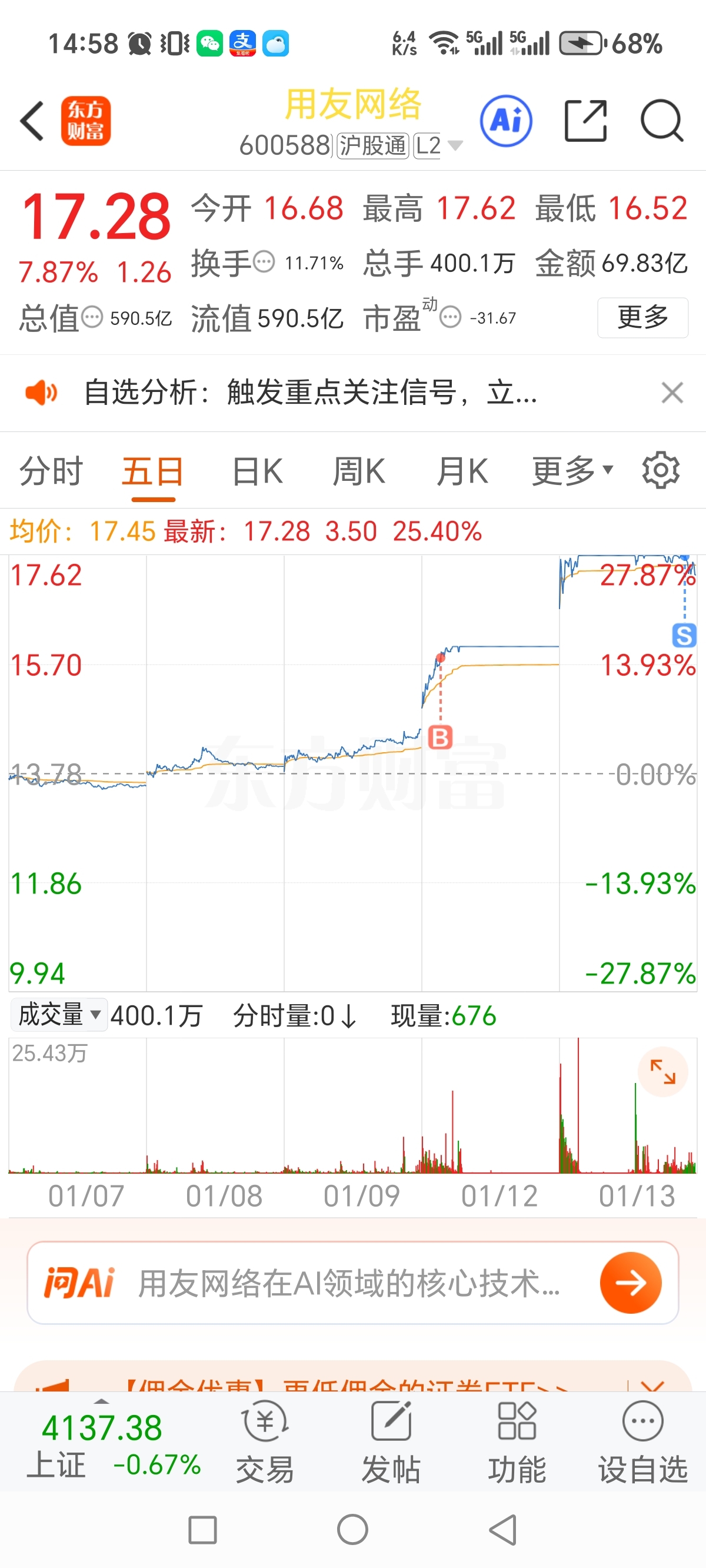 $用友网络(SH600588)$