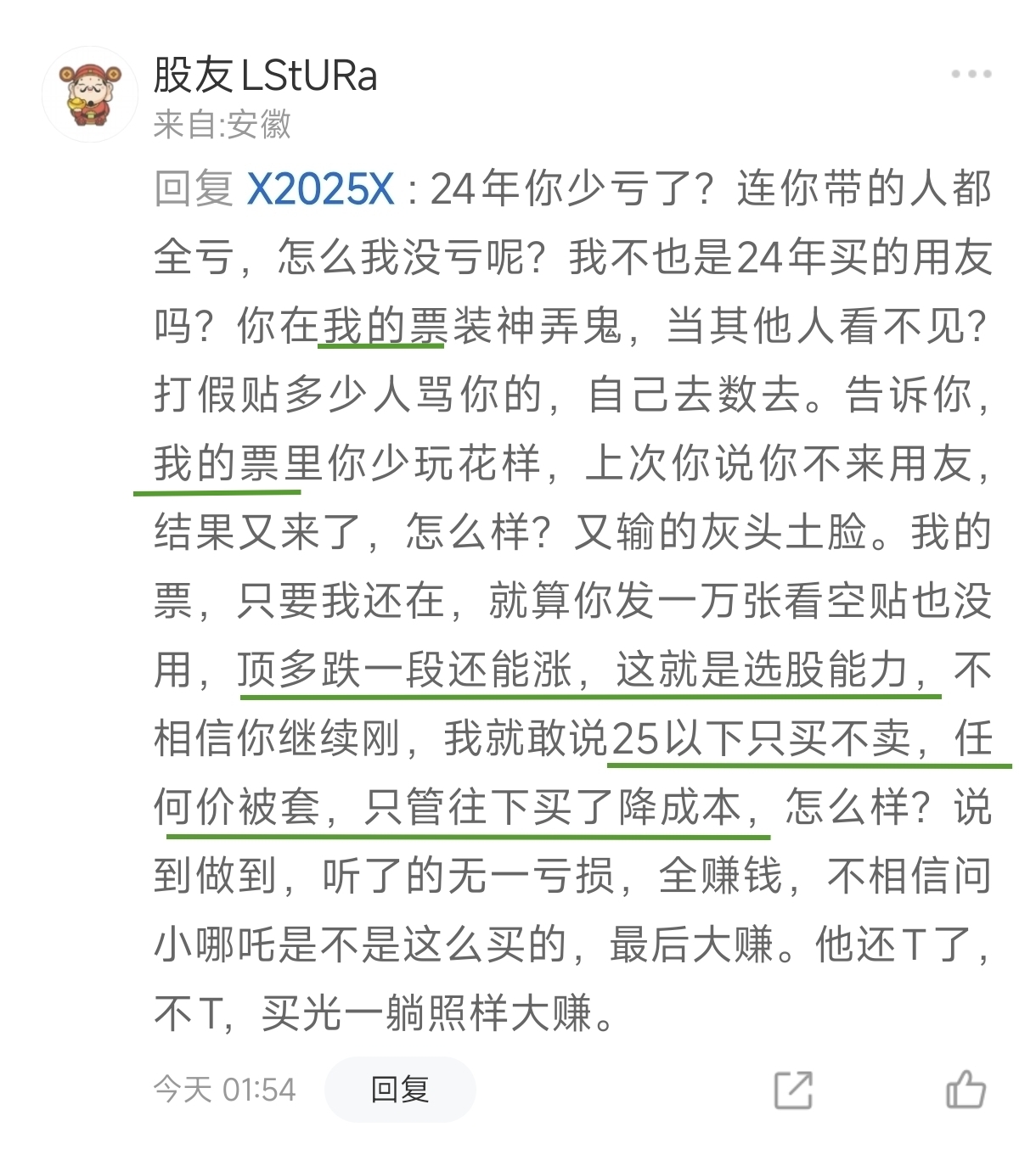 温馨提示: 1.根据《证券法》规定,禁止编造、传播虚假信息或者误导性信息,扰乱证券市场;2.用户在本社区发表的所有资料、言论等仅代表个人观点,与本网站立场无关,不对您构成任何投资建议。用户应基于自己的独立判断,自行决定证券投资并承担相应风险。《东方财富社区管理规定》