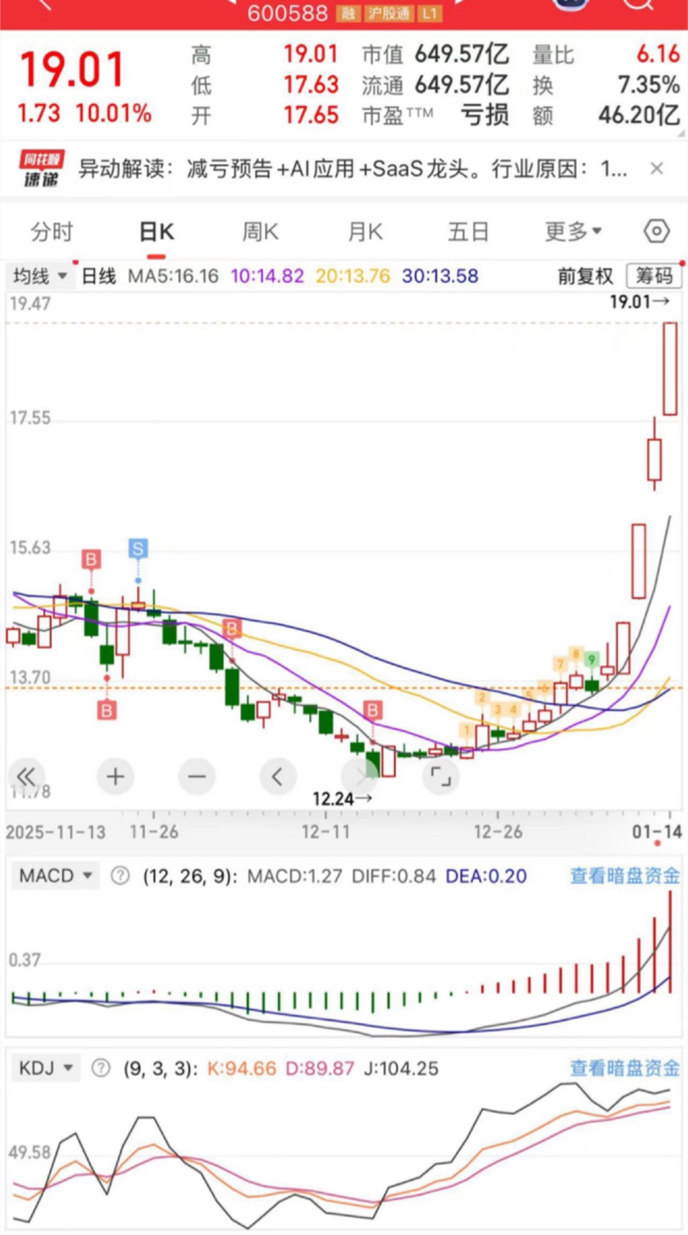 $用友网络(SH600588)$ 明天就到目标位了,要不要跑