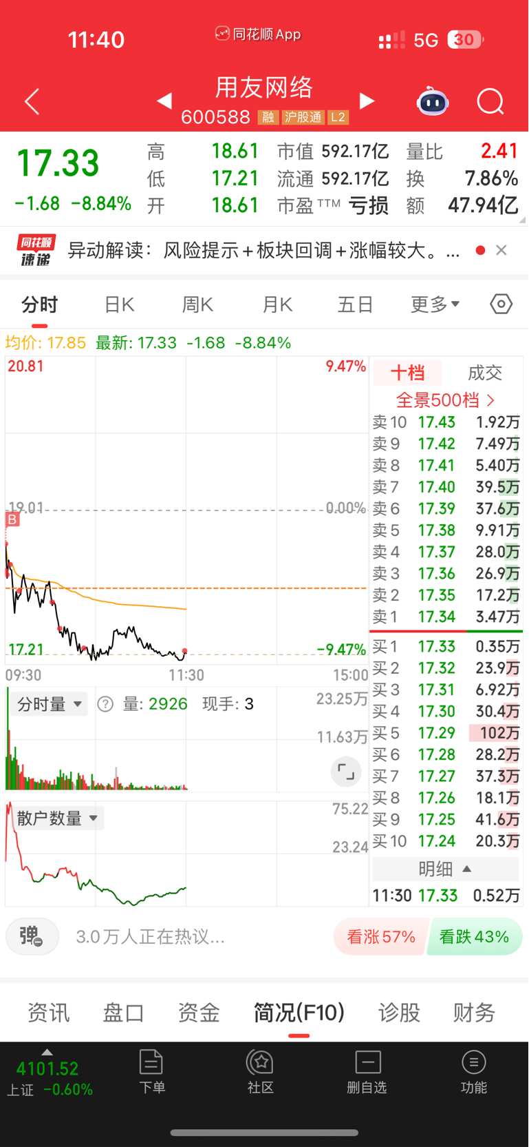 $用友网络(SH600588)$ 我来给兄弟们接盘了