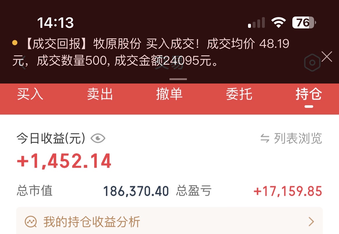 昨天果断卖出用友网络,赚55个点已经调仓进入牧原股份