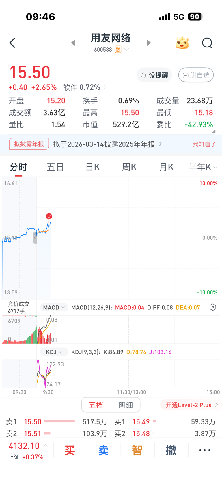 $用友网络(SH600588)$ 加了500股,目前3500股。