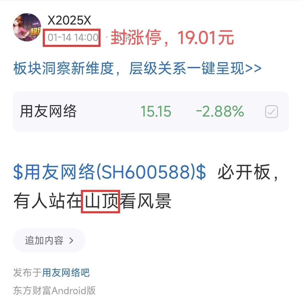 重新上传1-14日18:10分的跟帖截图。