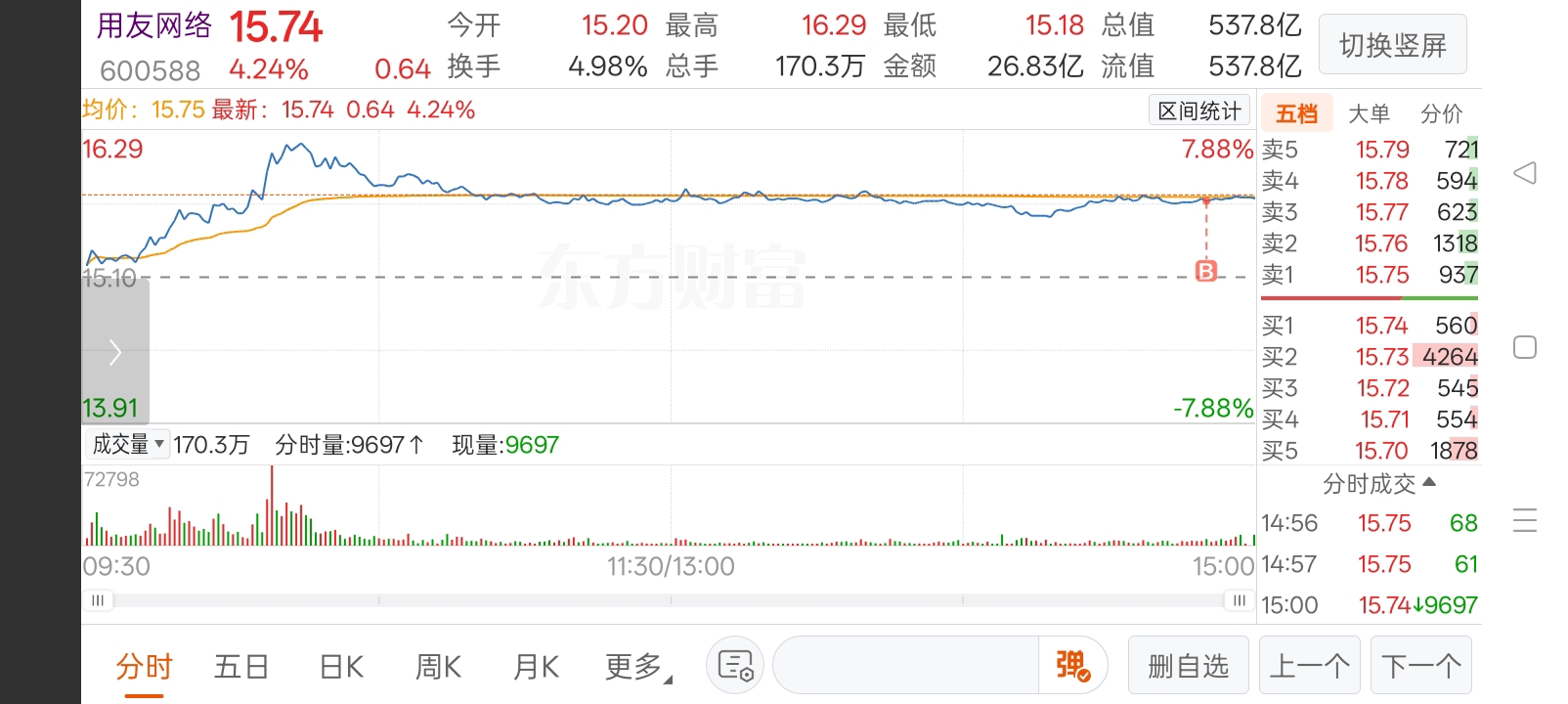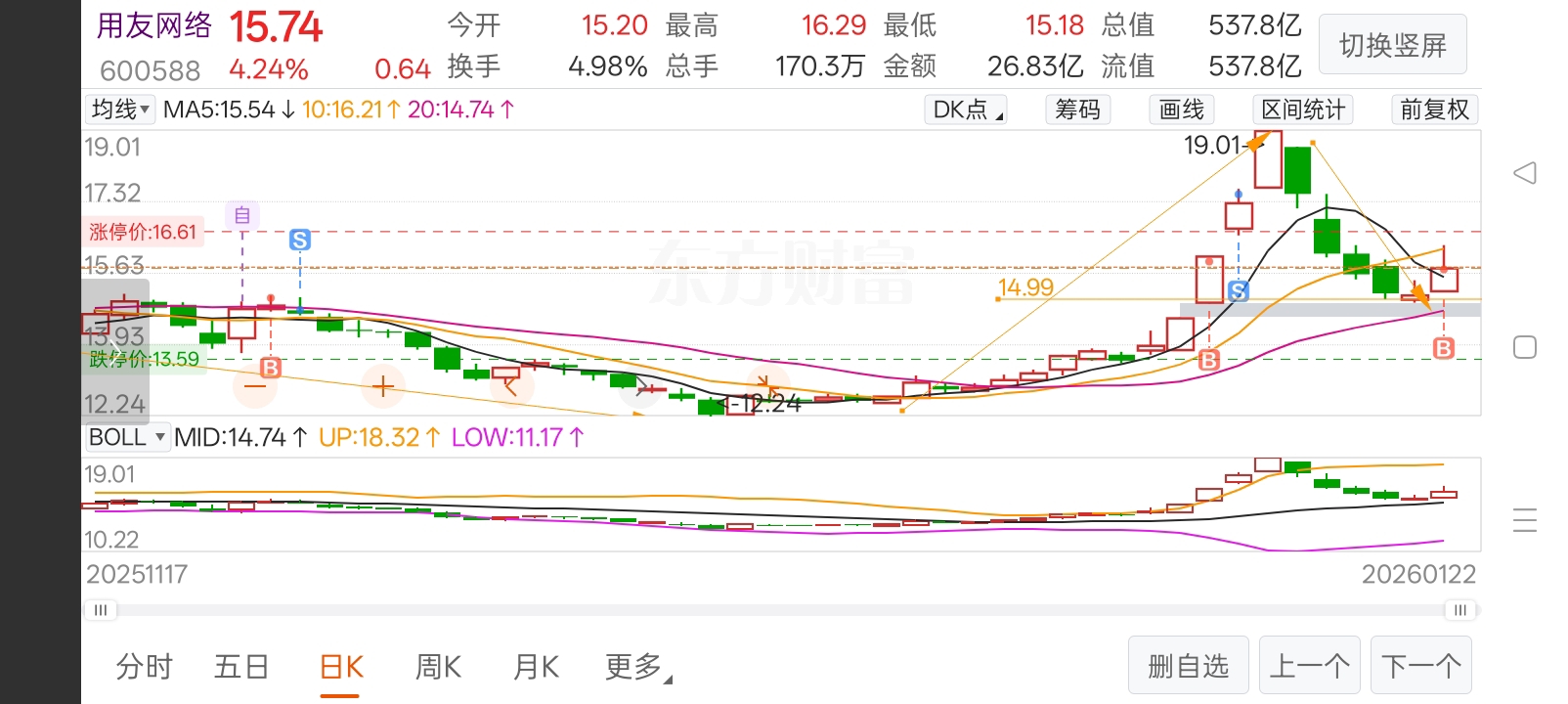 $用友网络(SH600588)$ #实盘记录#