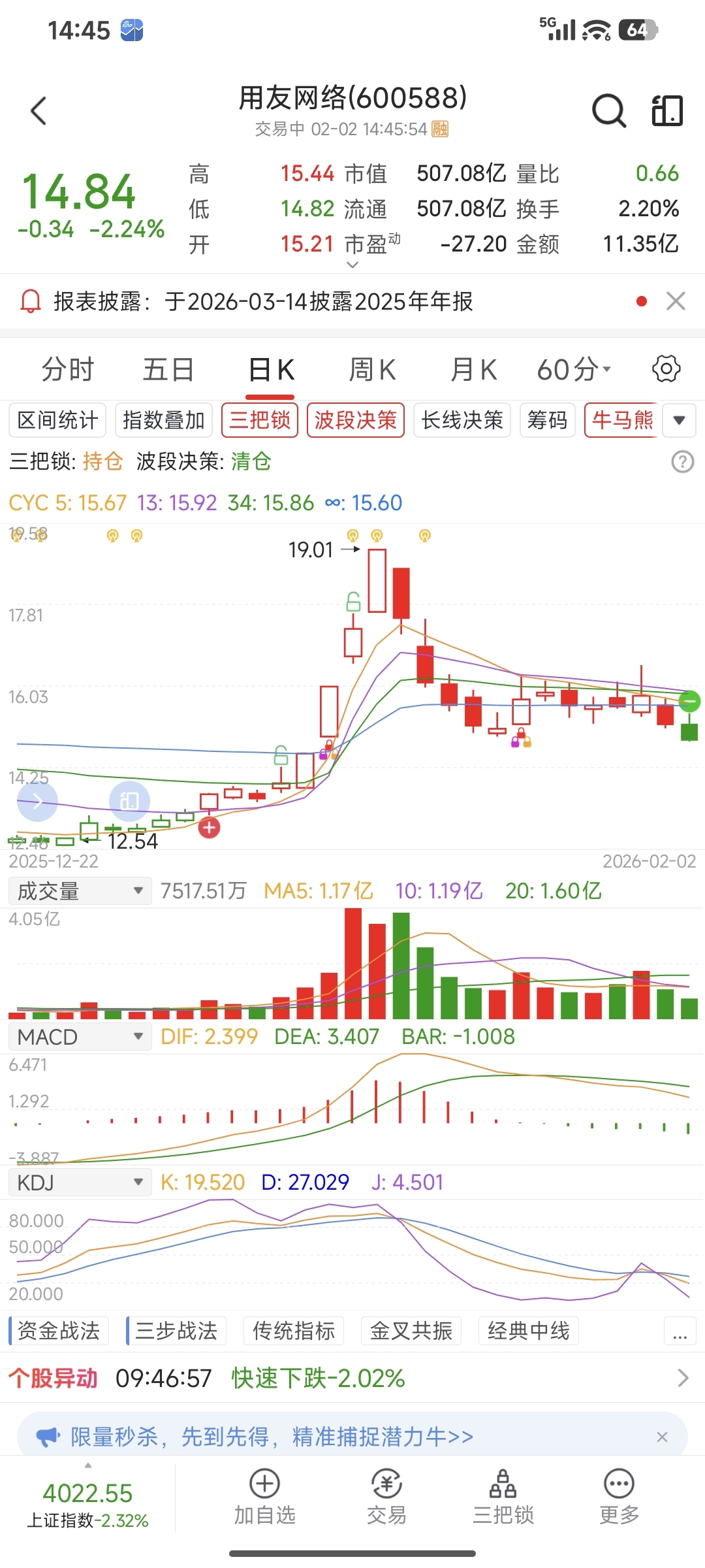 $用友网络(SH600588)$