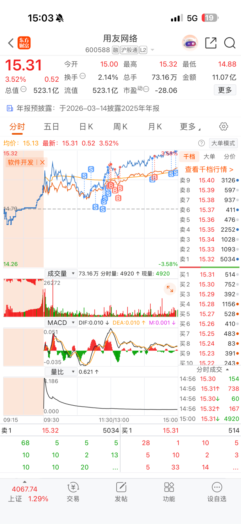 $用友网络(SH600588)$ 明天高开清仓,低开补缺口再加仓,反正苍蝇肉也是肉,捣乱好玩儿还不亏钱,真有意思