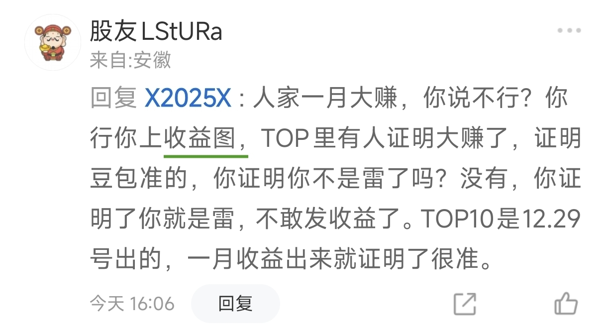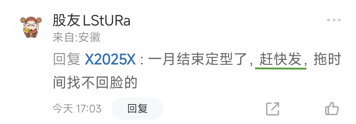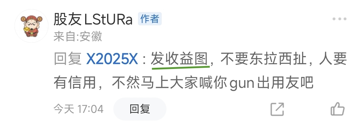 温馨提示: 1.根据《证券法》规定,禁止编造、传播虚假信息或者误导性信息,扰乱证券市场;2.用户在本社区发表的所有资料、言论等仅代表个人观点,与本网站立场无关,不对您构成任何投资建议。用户应基于自己的独立判断,自行决定证券投资并承担相应风险。《东方财富社区管理规定》