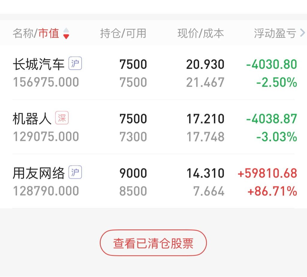 $长城汽车(SH601633)$ $机器人(SZ300024)$ $用友网络(SH600588)$ 下周目标长城汽车和机器人回本就好~