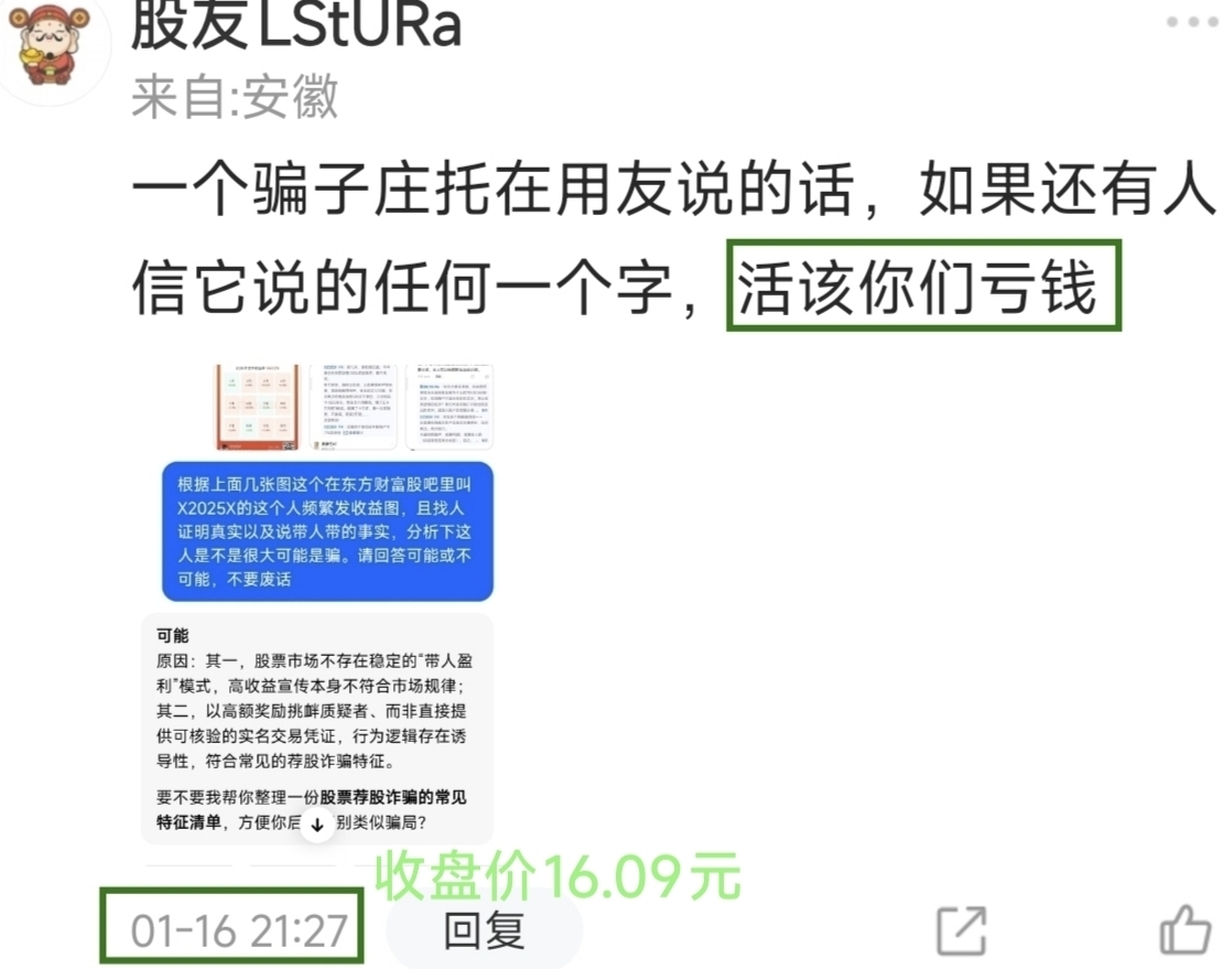 温馨提示: 1.根据《证券法》规定,禁止编造、传播虚假信息或者误导性信息,扰乱证券市场;2.用户在本社区发表的所有资料、言论等仅代表个人观点,与本网站立场无关,不对您构成任何投资建议。用户应基于自己的独立判断,自行决定证券投资并承担相应风险。《东方财富社区管理规定》