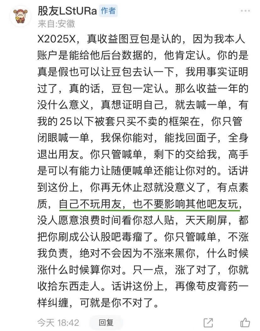 还是那句话,用友的涨跌和我没利害关系,股友亏盈更和我(发帖跟帖)没任何关系,发帖,跟帖,晒收益率都是每个人的自由,我就怼这一个人~~