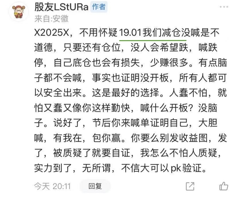七,在面子和人品之间权衡,最后选择了面子,忽悠20块以上,说自己在19.01元偷偷减仓了~