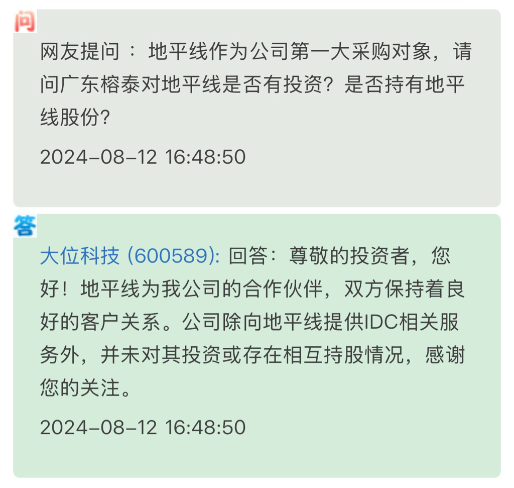 $大位科技(SH600589)$ $比亚迪(SZ002594)$ $地平线机器人-W(HK|09660)$ 大位科技为地平线智驾提供IDC服务,公司大客户合作关系