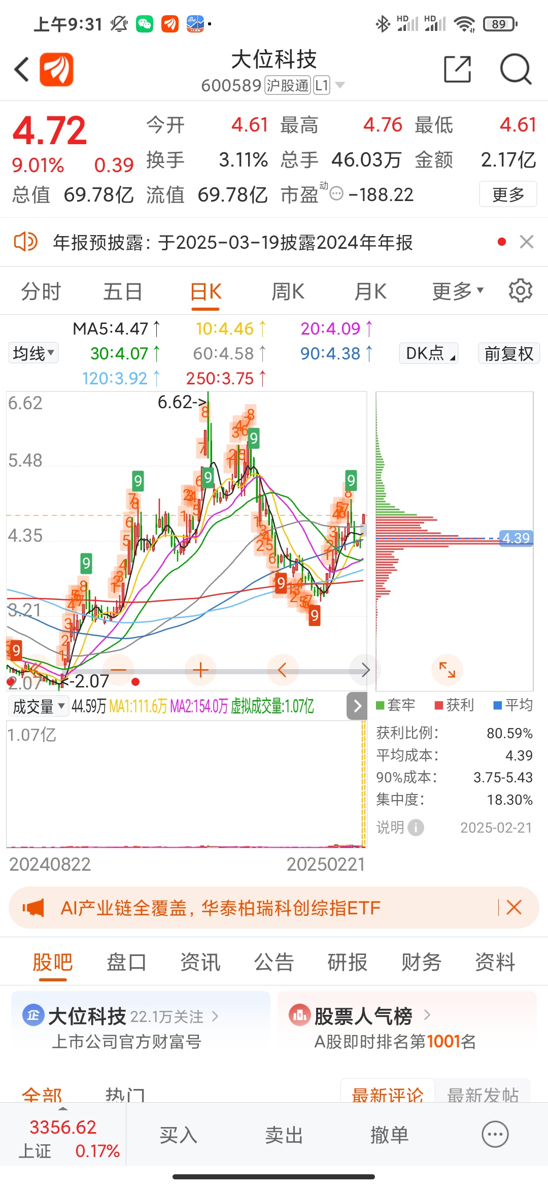$大位科技(SH600589)$