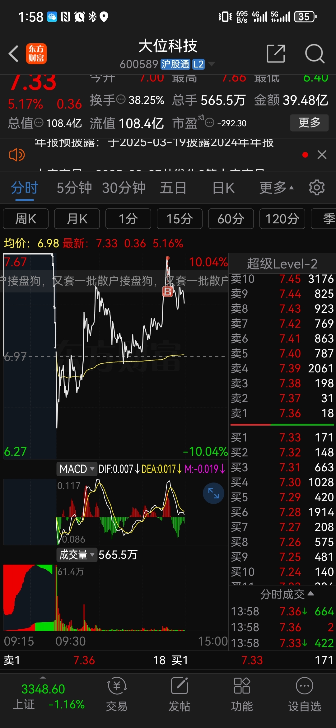 $大位科技(SH600589)$ 拉到9个点就为了套我这几百股嘛