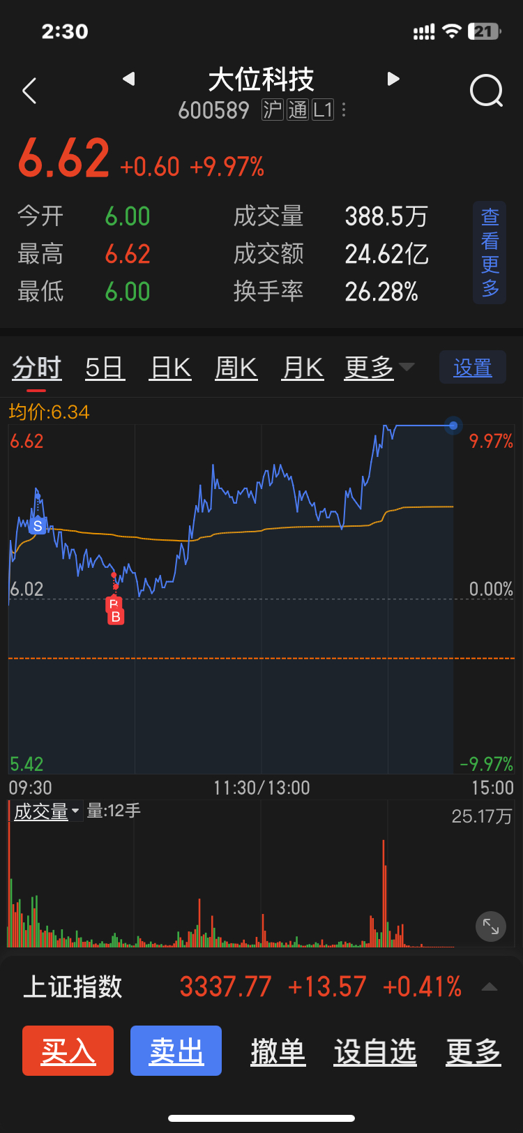 $大位科技(SH600589)$ 哈哈 可以一天赚两次了!
