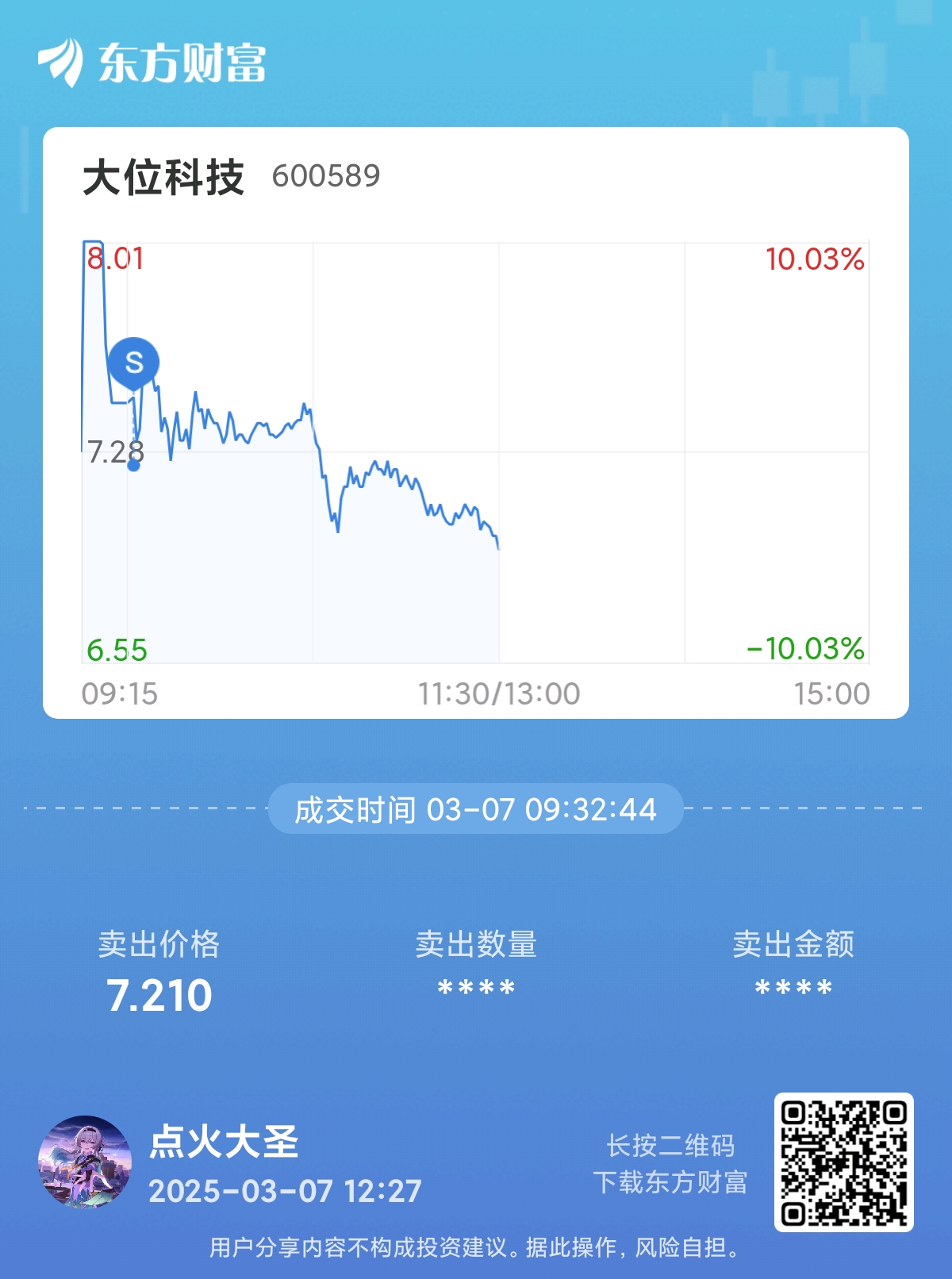 温馨提示: 1.根据《证券法》规定,禁止编造、传播虚假信息或者误导性信息,扰乱证券市场;2.用户在本社区发表的所有资料、言论等仅代表个人观点,与本网站立场无关,不对您构成任何投资建议。用户应基于自己的独立判断,自行决定证券投资并承担相应风险。《东方财富社区管理规定》
