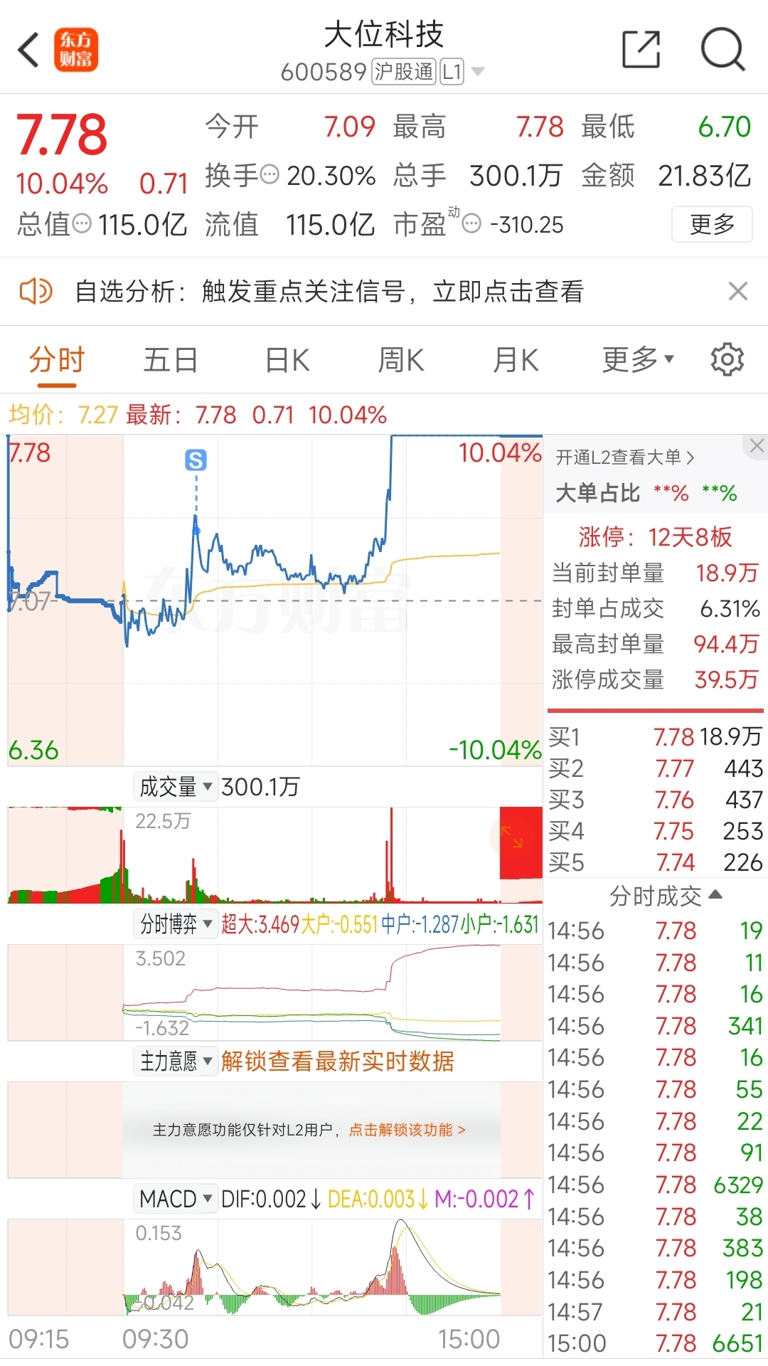$大位科技(SH600589)$ 明天让我接回来呗。