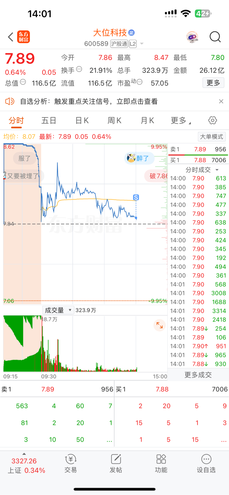 $大位科技(SH600589)$ 格局了一天 走了 兄弟们好运