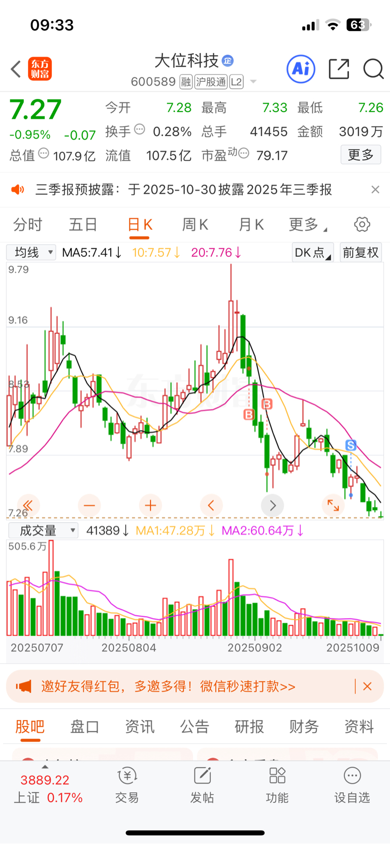 $大位科技(SH600589)$ 下跌趋势一旦形成,什么时候卖出都是正确的